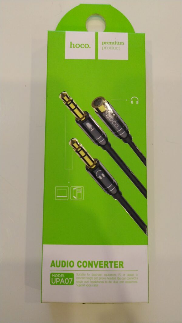 Кабель AUX, 2 x Jack 3,5mm(m) – Jack 3,5mm(f) HOCO UPA07, 0.3м, сплиттер, черный