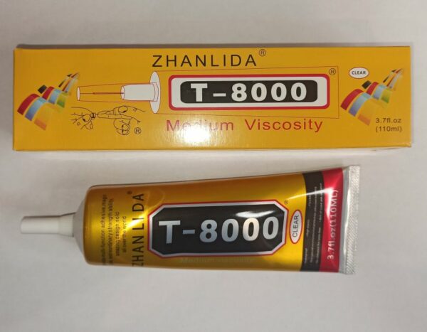 Клей T-8000 110 мл. (прозрачный) клей/герметик для проклейки тачскринов (4-6 минут высыхание при t18-32`твердость 70-85И вязкость 4800mpa.s)